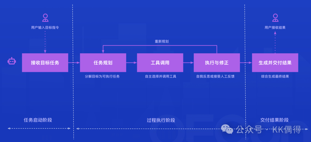 一个 Agent 的完整使用过程,其实可以分为“三段式旅程”: