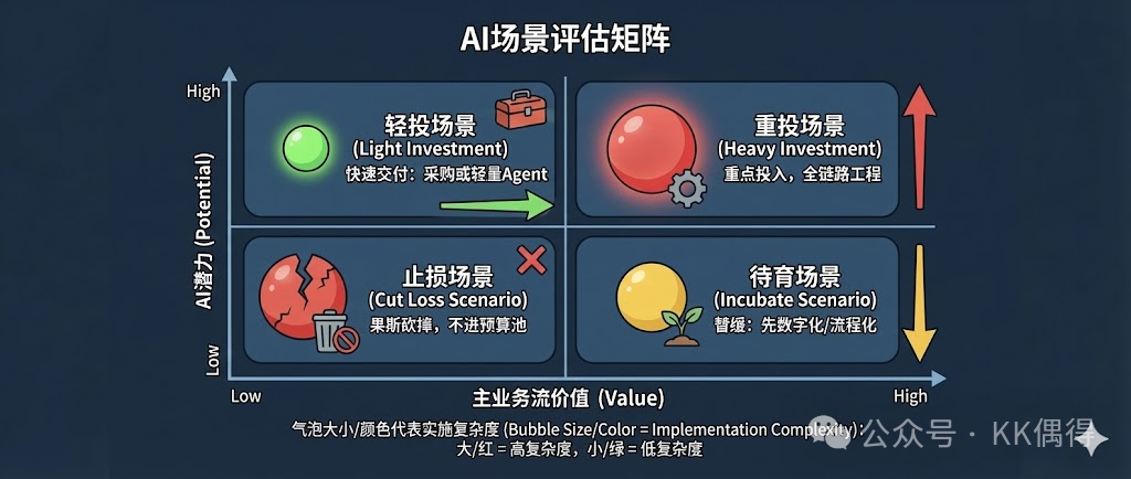 有限的预算应该始终瞄准主业务流,聚焦真正高价值的AI场景。